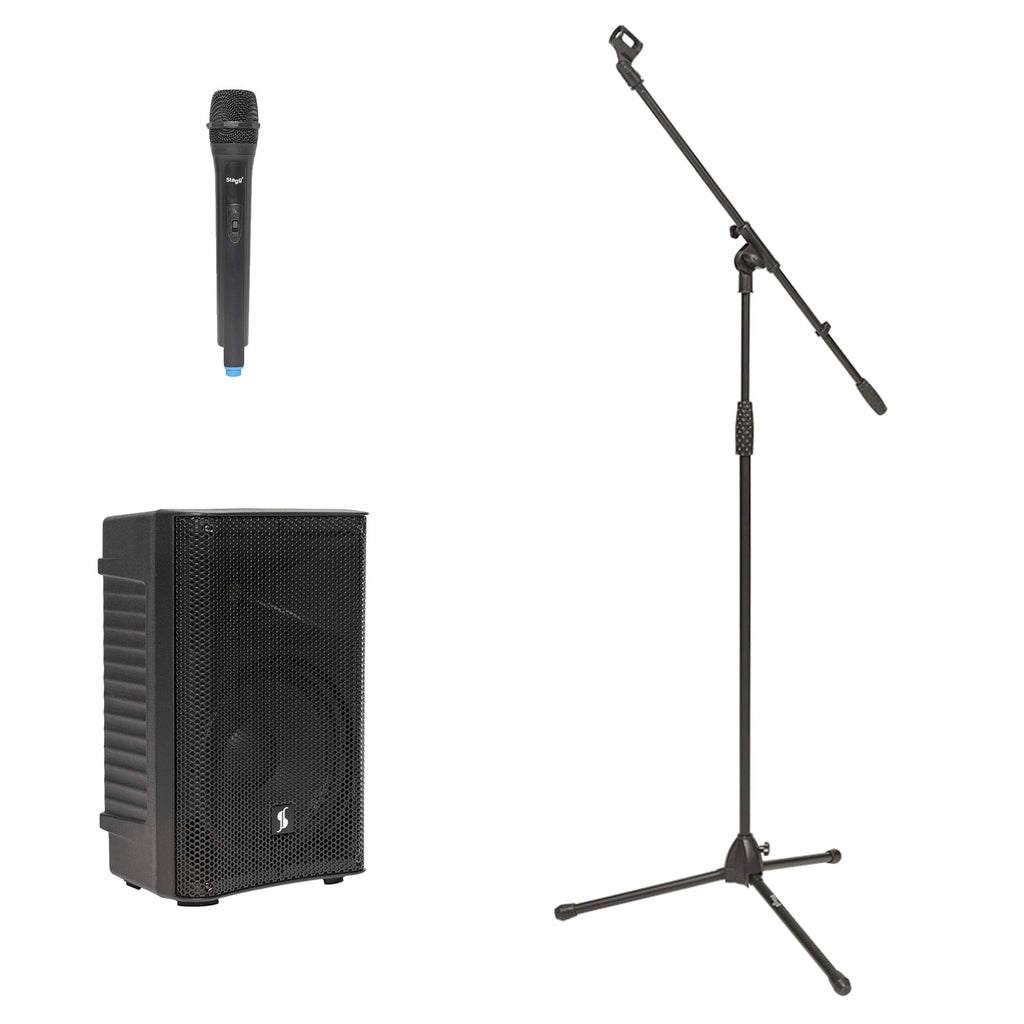 Stagg 2-Way Active Speaker, Wireless Microphone and Microphone Boom Stand