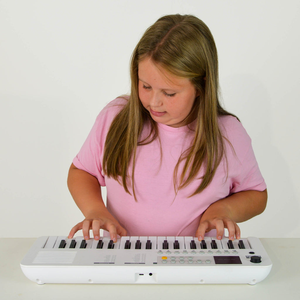 Introducing the Axus Mini Keyboard, a sleek and portable instrument designed with beginners in mind. Featuring 37 mini keys that are perfect for young learners or those with limited space. Its compact size and lightweight design make it easy to carry and set up anywhere, from home to music classes.