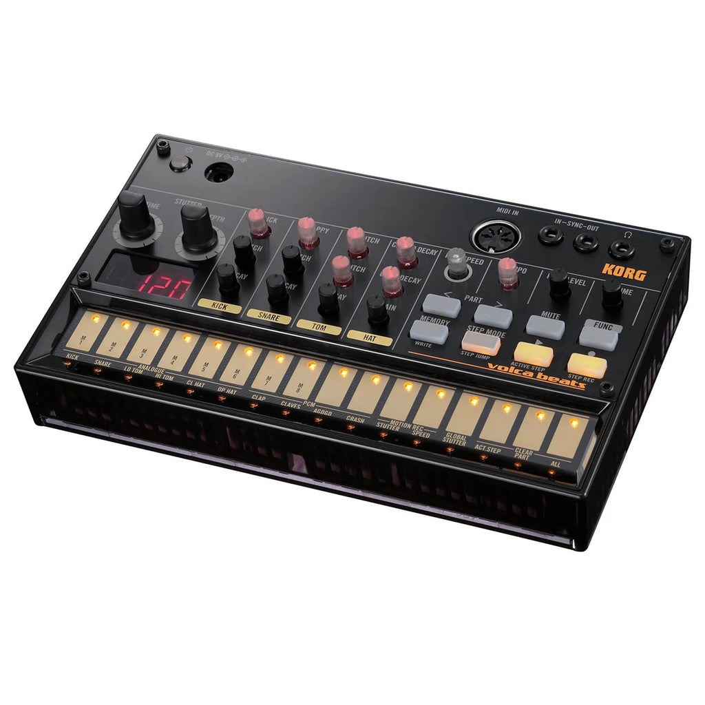 The Volca Beats upholds the tradition of classic drum machines with thick, powerful analogue drum sounds and a super intuitive 16-step sequencer. Drawing inspiration from the iconic rhythm machines of the past, it delivers the kind of dense, present analogue sound that cuts through a mix in a way samples and plugins rarely match. Whether you're building dance floor-ready beats in the studio or jamming on the go, Volca Beats makes it quick and satisfying to get something great sounding.